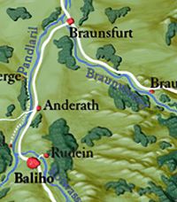 Wir reisten weiter nach Braunsfurt, weil dort der Leichnam eines ansässigen Zwerges, ohne Kopf aufgefunden wurde und B v.H zumindest gesichtet. Der Zwerg habe sich seit einiger Zeit nur noch Nachts blicken lassen und sich vom gesellschaftlichen Leben zurück gezogen haben, hieß es. Wir liefen den kalten Spuren nur so hinterher .. es war ermüdend und frustrierend, und die Stimmung in unserer an sich schon konfliktreichen Gruppe… war kurz vorm kippen. (Die Vorstellung den Ungläubigen meinen Speer durch den Kopf zu jagen, war sehr verlockend...aber ich folge.. kämpfe und diene. Auch dieses waren alles nur Prüfungen… ) Wir nahmen uns ein Zimmer und wollten früh schlafen gehen. Vielleicht würde uns ja morgen ein Licht aufgehen. Am nächsten Morgen ging es Selo sehr schlecht, er berichtete, dass er in dieser Nacht von einem Schatten angegriffen worden sei. Es gab keinen Zweifel, der Vampir, der die Bauersfrau heimgesucht hatte, war uns gefolgt.